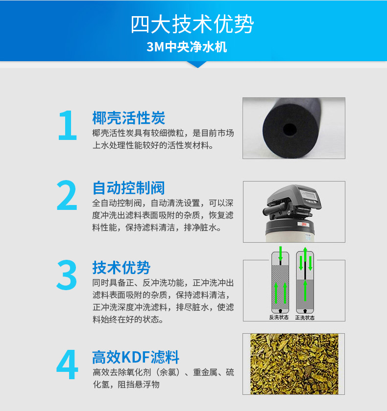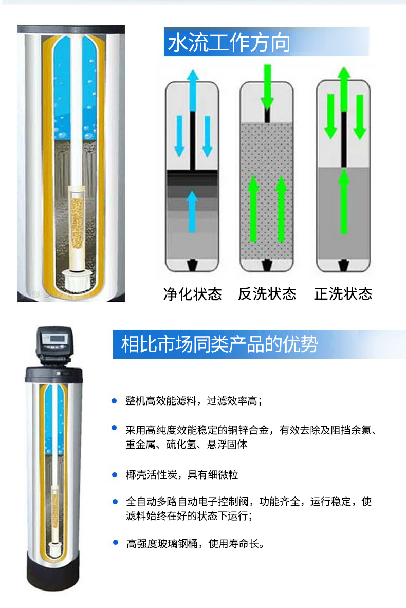 ●全自動(dòng)控制閥,自動(dòng)清洗設(shè)置,可深度沖洗出濾料表面吸附的雜質(zhì)