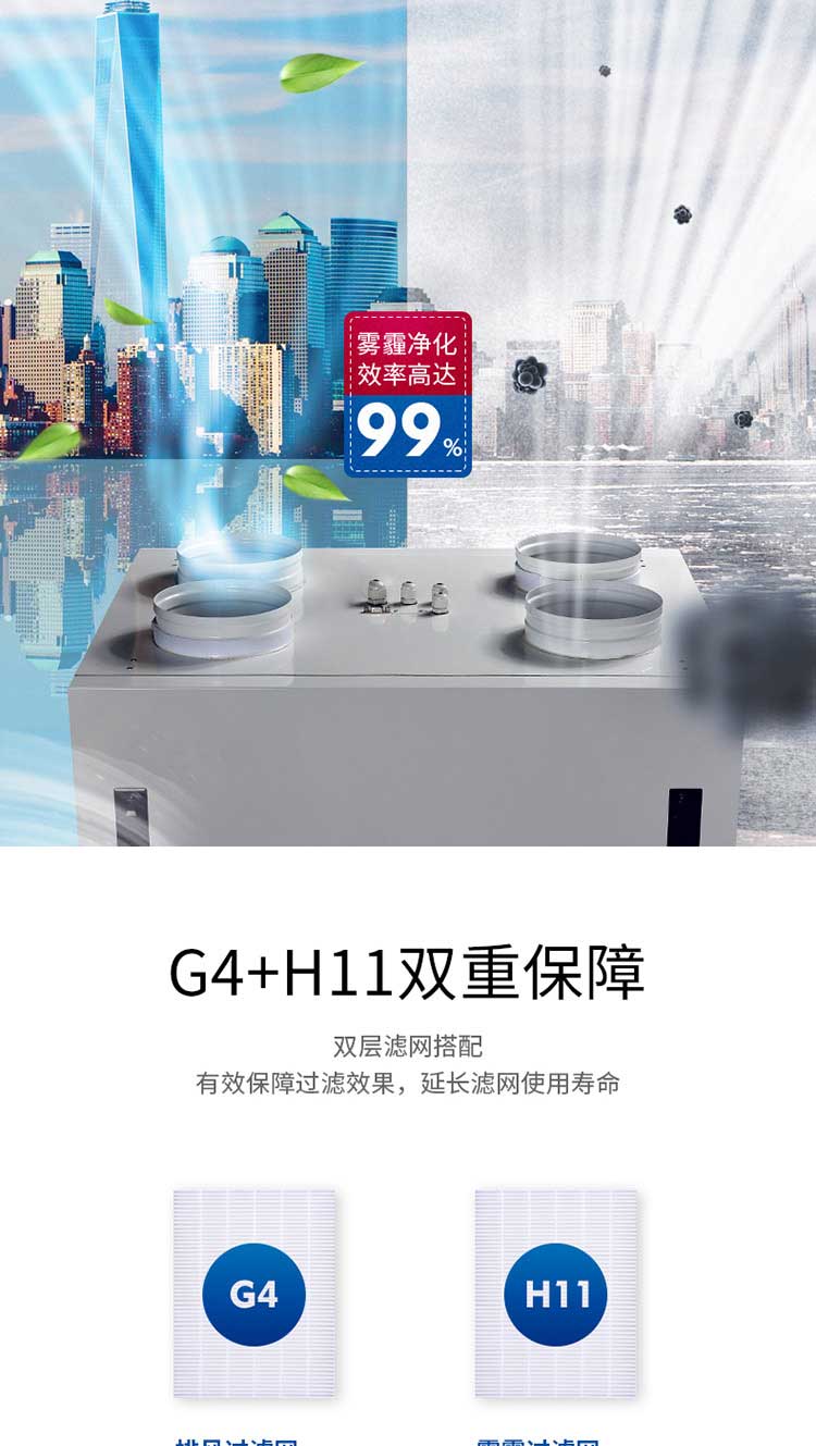 ●G4+H11雙層過濾網保障,凈化效率高達97%
