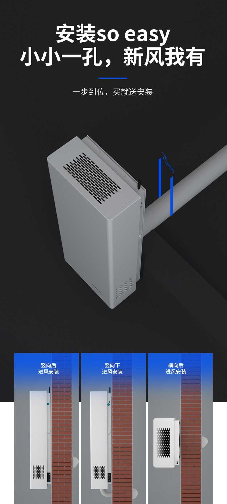 ●壁掛式安裝,無需吊頂,適合各類新舊房屋
